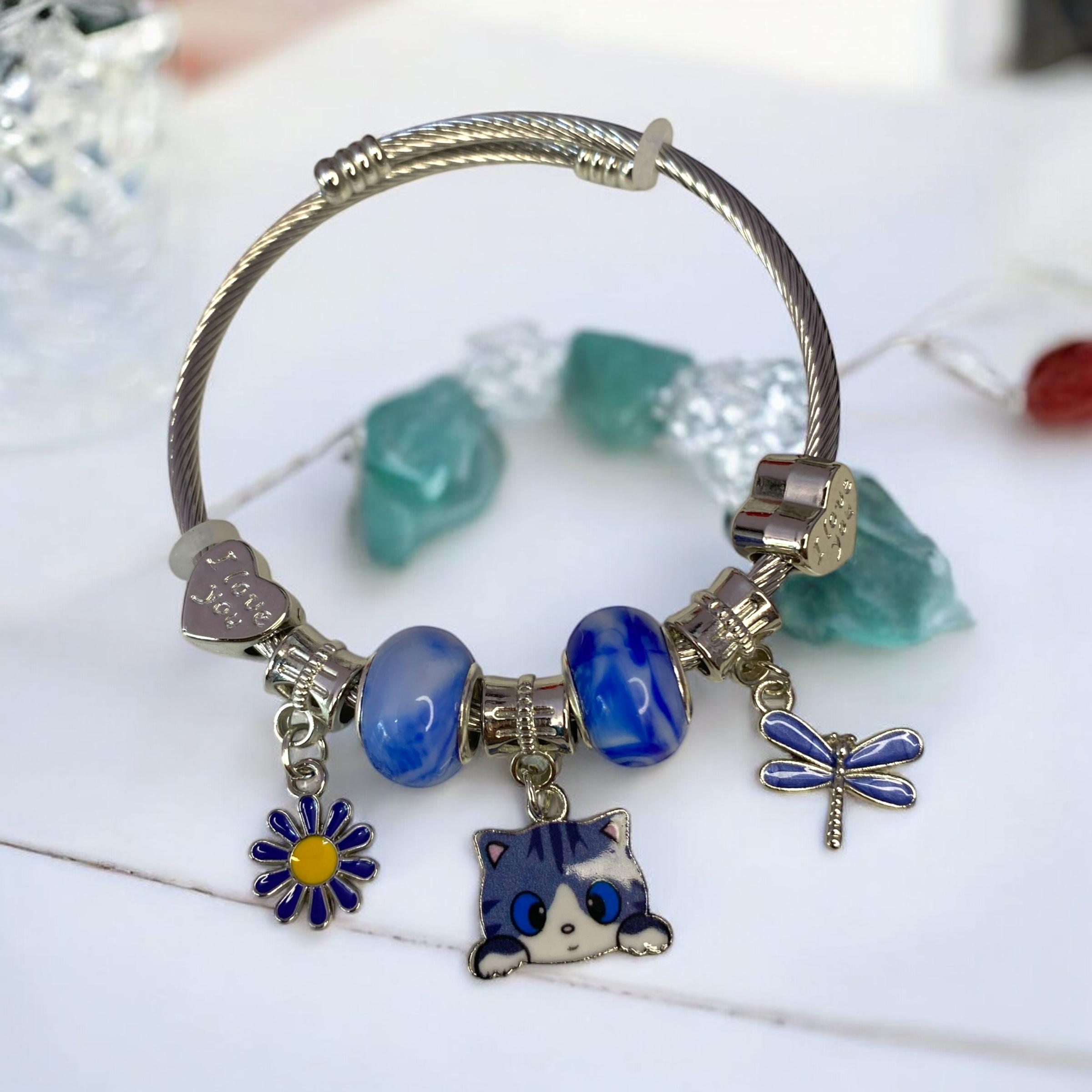 Kadın Kedicik Figürlü Çelik Pandora Charm Şık Bileklik