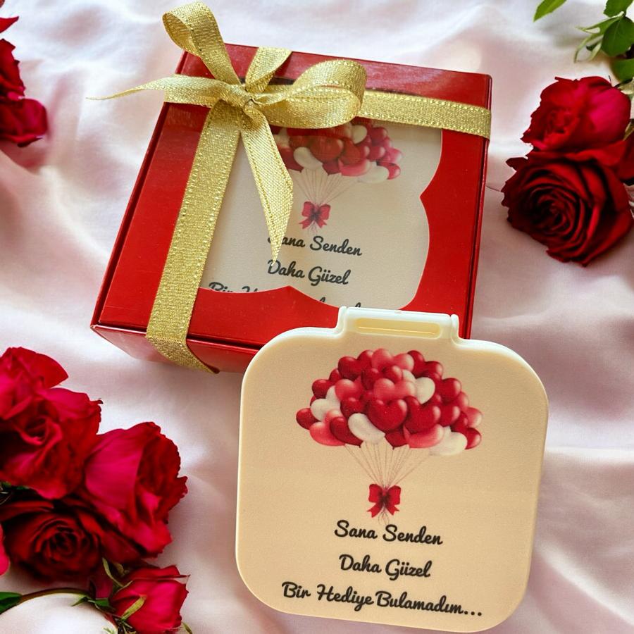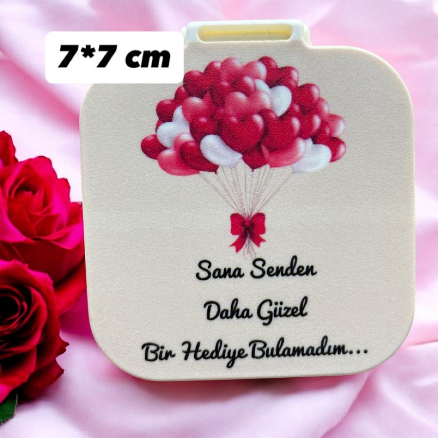 Sevdiklerinize alabilleceğiniz en anlamlı en uygun hediyeliklerden. ayna 7 cm kutu 9 cm dir. Çoklu siparişlerinizde istenilen yazı basılır