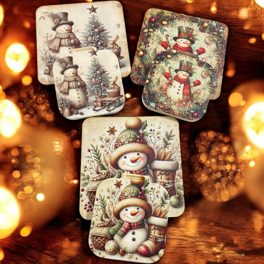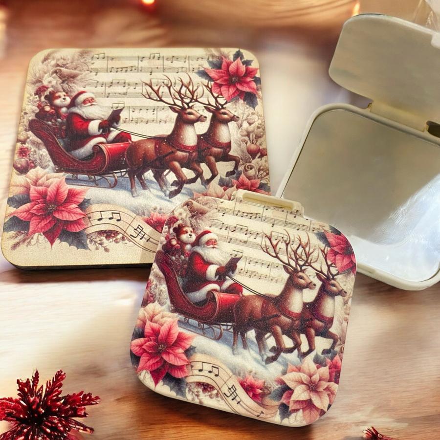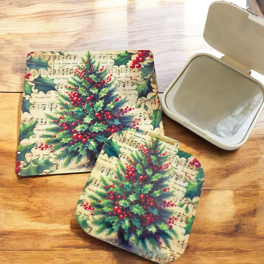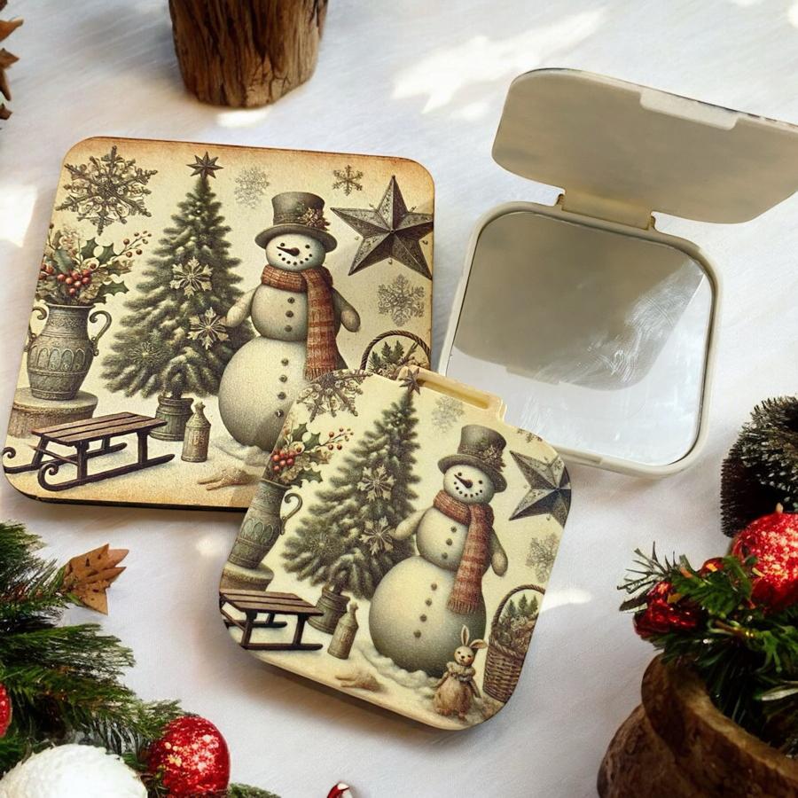 Yeni Yıl Nostalji Ahşap Bardak Altlığı Ayna Set