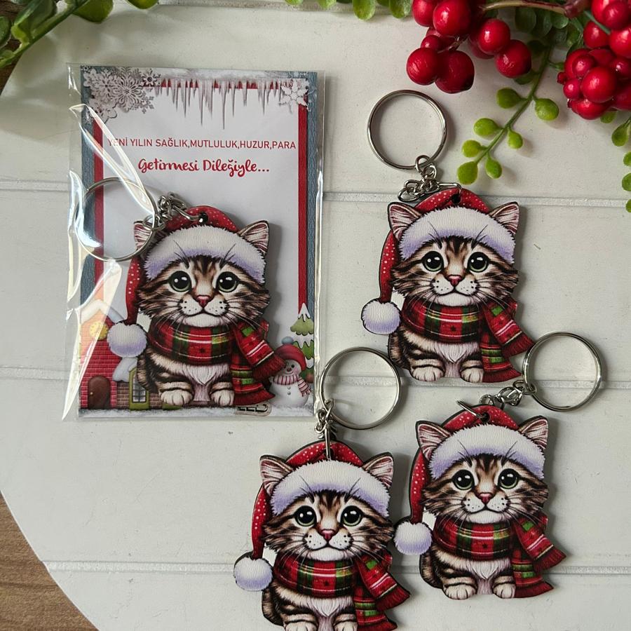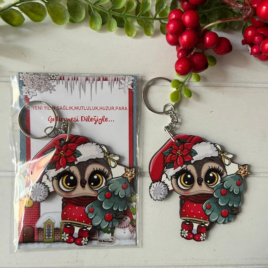 Yeni Yıl Yılbaşı Hediyelik Ahşap Anahtarlık 5 Adet